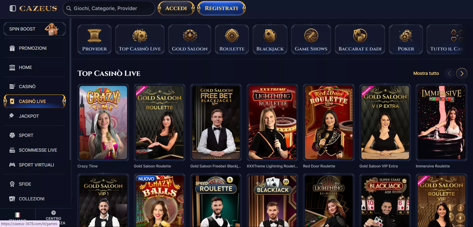 Cazeus Casino emerge come opzione valida per giocatori italiani alla ricerca di varietà e qualità. L’impressionante catalogo di quasi 9.000 giochi, combinato con bonus competitivi e supporto per PostePay.