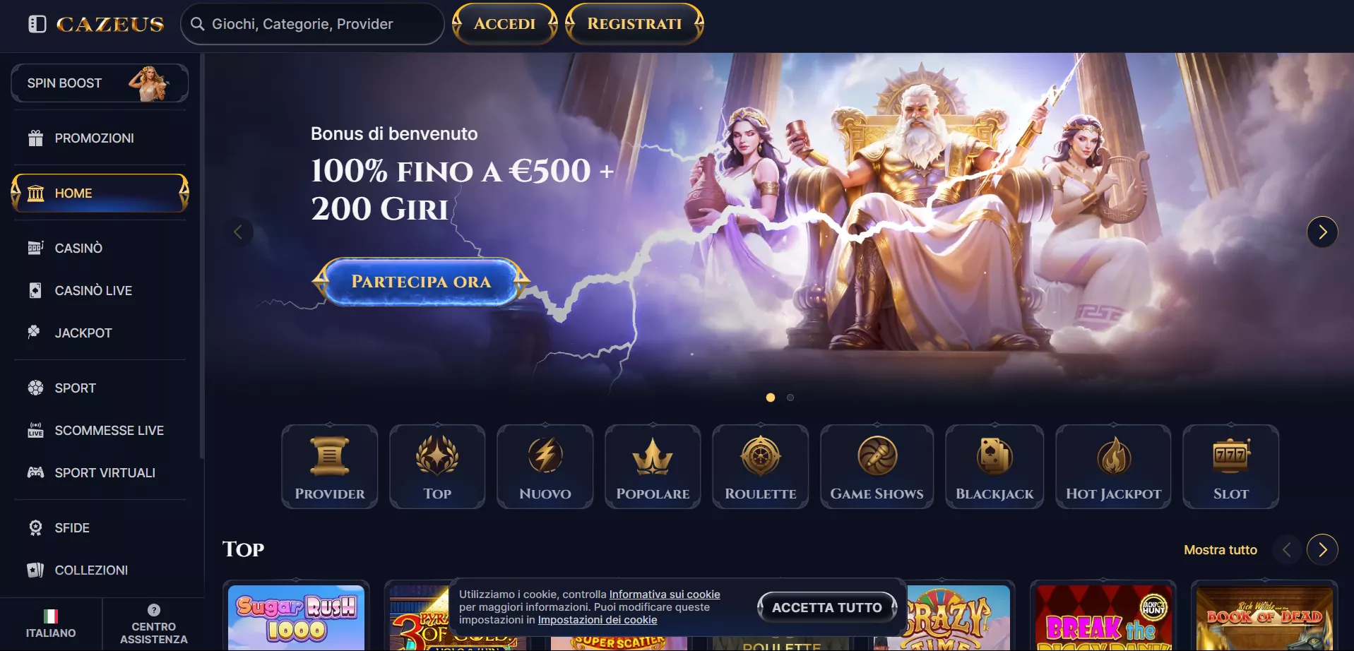Fondato nel 2024, Cazeus rappresenta una delle piattaforme di gioco online più interessanti nel panorama internazionale. Gestito da Adonio N.V. e regolamentato dalla Philippine Amusement and Gaming Corporation (PAGCOR), questo casinò offre un’esperienza immersiva con tema mitologico greco, dove Zeus domina l’interfaccia con fulmini e animazioni spettacolari.