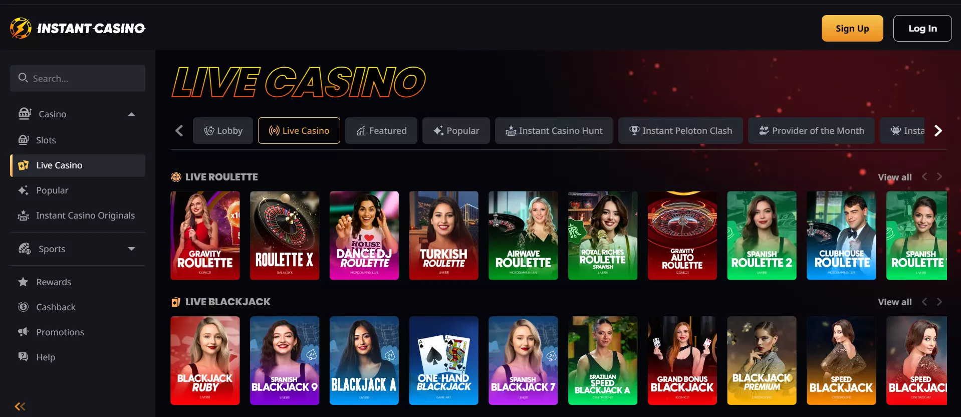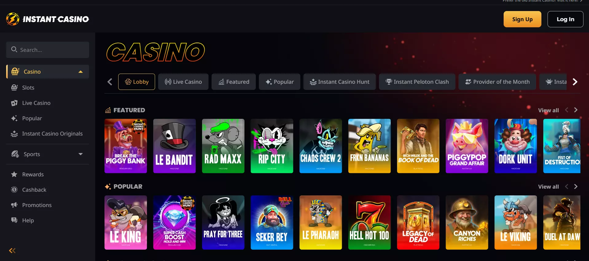 Il catalogo di Instant Casino impressiona con oltre 6.000 titoli forniti da 65 sviluppatori leader del settore, tra cui Pragmatic Play, Evolution Gaming, NetEnt, Microgaming e Nolimit City. La piattaforma aggiorna costantemente la sua offerta con nuove release ogni settimana.
