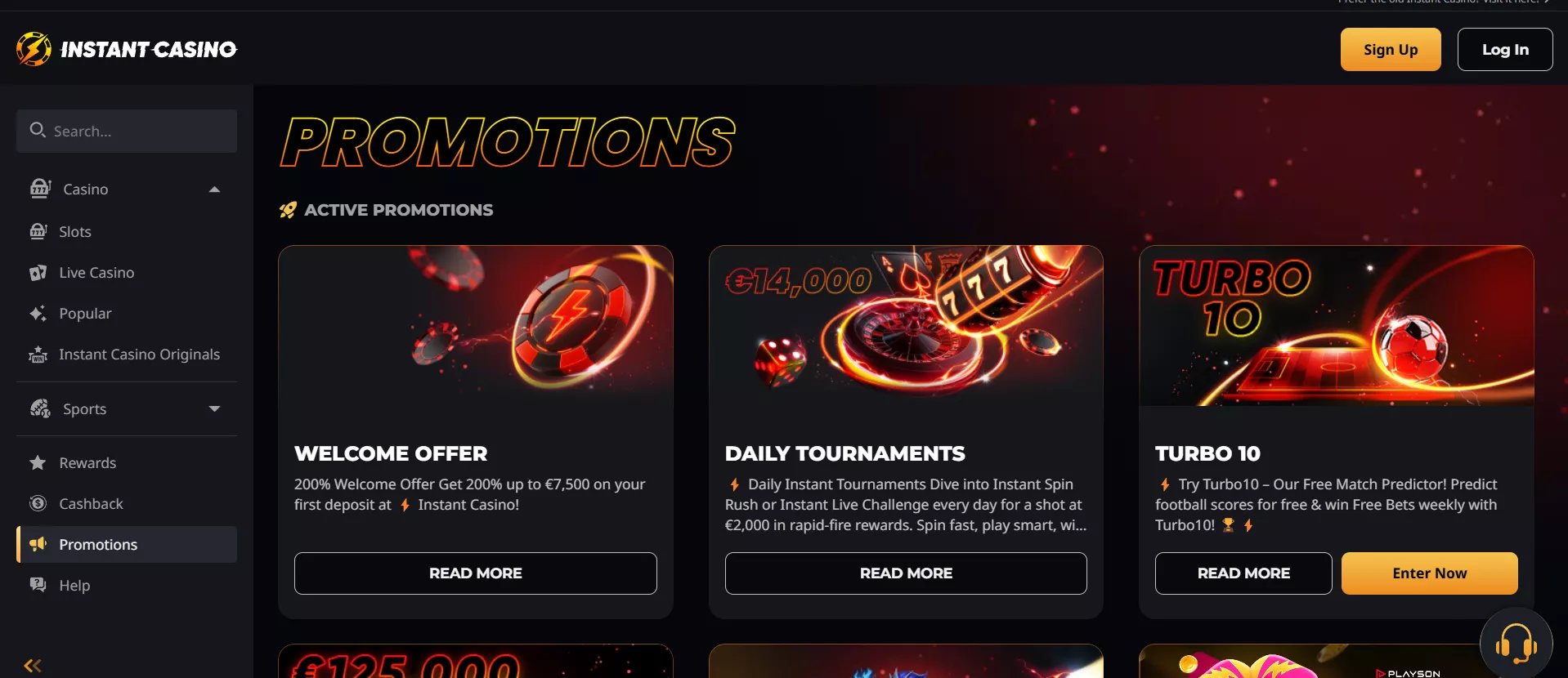 Le promozioni settimanali includono il Tuesday Reload del 50% fino a €400, il Weekend Cashback del 25% sulle perdite nette e tornei slot giornalieri con montepremi di €300.000 mensili. Il programma fedeltà “Instant VIP” offre vantaggi progressivi attraverso 12 livelli, con benefici come prelievi prioritari, bonus personalizzati e un manager dedicato per i livelli superiori.