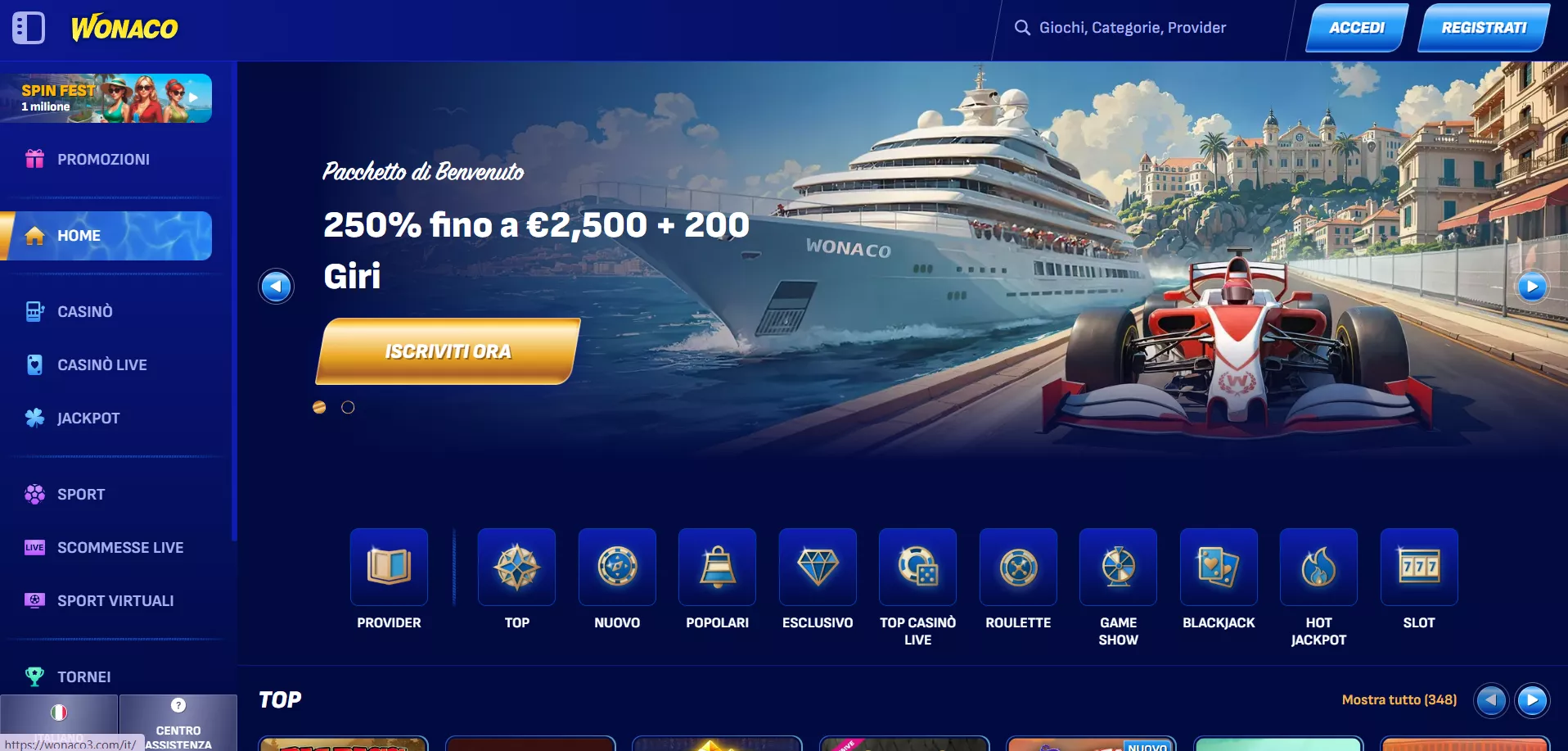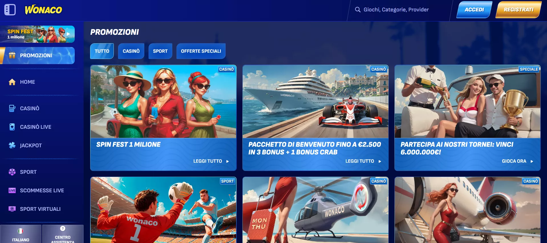 Wonaco emerge come una piattaforma competitiva nel panorama dei casinò online italiani, distinguendosi per l’impressionante catalogo di oltre 5.000 giochi e l’integrazione completa delle criptovalute. Fondato nel 2024, il casinò ha rapidamente costruito una reputazione solida grazie alla varietà dell’offerta, bonus generosi e tecnologia all’avanguardia. Le limitazioni principali riguardano il supporto linguistico e i requisiti di scommessa elevati, ma questi aspetti sono bilanciati da un’esperienza di gioco premium, pagamenti affidabili e un programma fedeltà rewarding che premia costantemente i giocatori attivi.